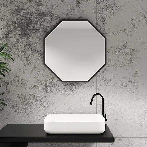 Arezzo Matt Black 600mm Octagon Mirror