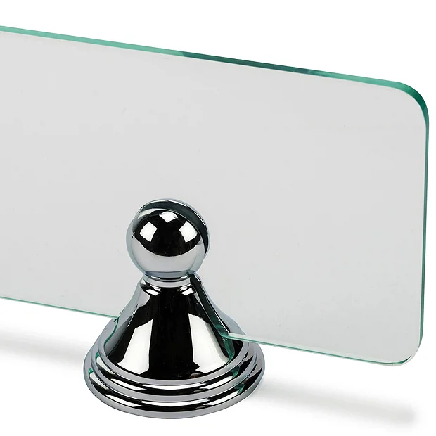 This Glass Shelf is part of the Westminster range from leading bathroom accessory brand Croydex. The shelf fixings are manufactured from a durable zinc alloy, and completed with a high quality chrome plated finish. The fixings are all concealed improving on the look of the piece, but is easy to install making it a great value choice. The glass shelf is made from toughened glass.