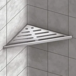 A stylish shower shelf in an aluminium finish. Fits in 90 degree corners. The shelf attaches in the grout joint with silicone so no drilling required. Shower shelf can be tiled in during installation or fitted retrospectively.