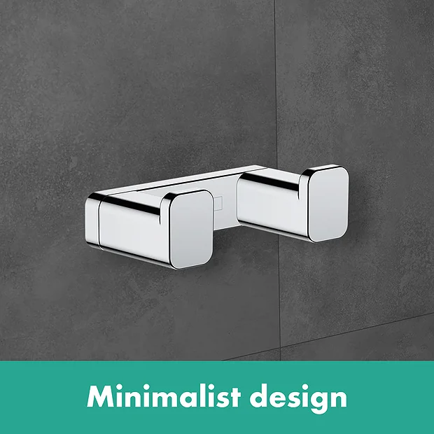 The hansgrohe AddStoris Double Robe Hook provides the perfect finishing touch for upgrading your bathroom, It comes finished in hard-wearing chrome that creates a polished look that is easy to maintain.