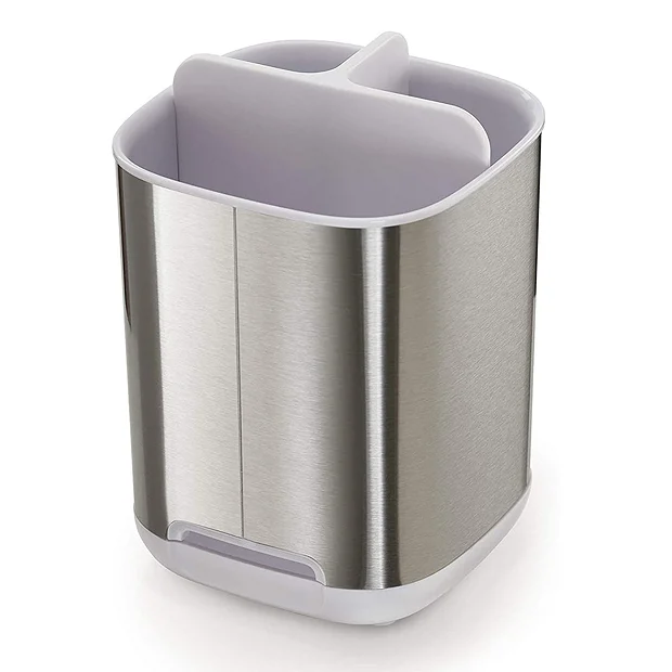 This compact EasyStore Steel Toothbrush Holder is divided into different sections to provide organised storage for a variety of oral care items, such as manual or electric toothbrushes and toothpaste tubes.