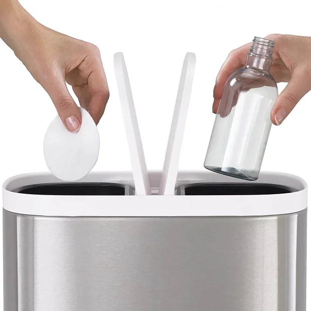 - Bathroom recycling bin with split compartments allow you to separate waste and recycling