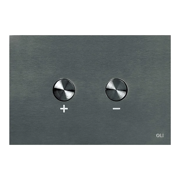 A stainless steel pneumatic flush plate in Brushed Black finish. Its unique and versatile design integrates into any style of decor.