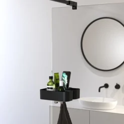 Create more space behind your shower screen with the Tiger 2-Store Clip-on Shower Basket. This product offers elements of character with smart and stylish storage solutions. This way you can easily clamp the basket to the glass screen, the hooks can be placed flexibly and the set is equipped with a universal phone holder. You can also enjoy your favorite music while taking a shower.