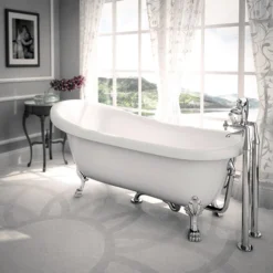 Looking for a sleek way to complete your roll top bath? This Traditional Luxury Exposed Free Standing Bath Drainage Kit is just the thing. The bath drainage kit makes a statement of your tub’s piping with a look that nods to the traditional style of classic freestanding baths. Its timeless cylindrical body and chrome finish mean it’s easy to pair it with other fixtures in your space. Whatever the size of your tub, this roll top bath waste will fit to suit its length – simply cut the fixture to the size you require before you install.
