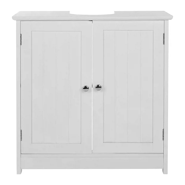 This excellent white under sink bathroom cabinet fits around most sink standard pedestals to make the most of your space. Made from MDF with a painted white wood finish, the neutral colour will fit in with any bathroom decor.